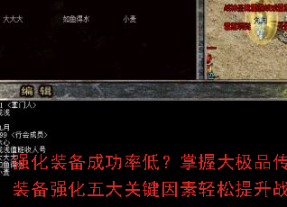 大极品传奇装备强化五大关键因素轻松提升战力" alt="强化装备成功率低?掌握大极品传奇装备强化五大关键因素轻松提升战力" />